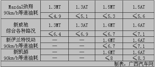 以下是幾款熱點車型的理論油耗:(L/100km)