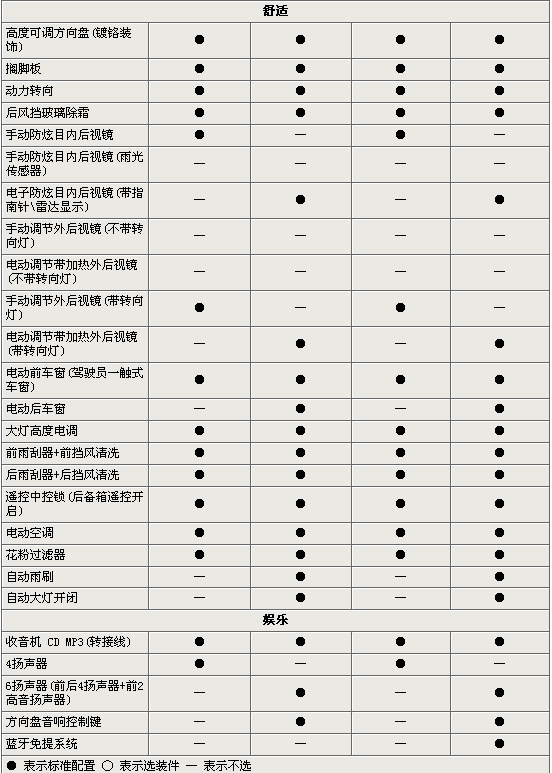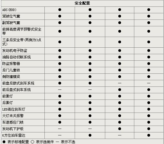 在安全配置上,四個(gè)系列車型都標(biāo)配了ABS+EBD,同時(shí)還有雙安全氣囊、發(fā)動(dòng)機(jī)電子防盜、側(cè)防撞鋼梁、大燈未關(guān)報(bào)警、車速感應(yīng)門鎖。1.8L車型還配置了發(fā)動(dòng)機(jī)下護(hù)板,保護(hù)發(fā)動(dòng)機(jī)安全。不過在剎車方面,1.4L車型為前盤后鼓式,1.8L車型為前后盤式。