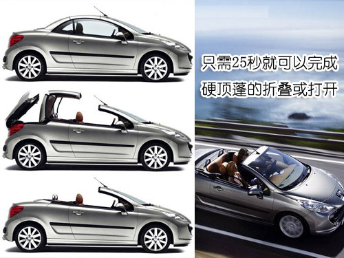 進口標致206CC的替代和升級車型———標致207CC于9月6日全面投放中國市場,目前推出兩款車型——時尚型25.5萬,精英型29.5萬,并可以選裝價值1700元的Rcline運動套件。隨著207cc的上市,206cc車型也將逐漸淡出市場。