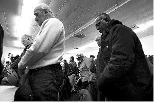 11月20日,美汽車企業(yè)退休員工在月度聚會上祈禱經(jīng)濟形勢好轉(zhuǎn)。