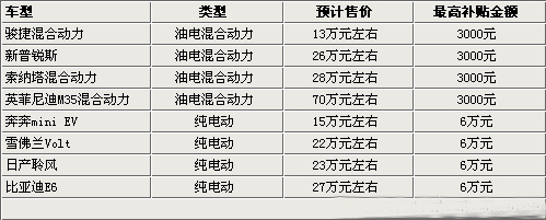 此項新能源汽車補(bǔ)貼工作的試點實施,將拉近消費者與環(huán)保汽車的距離,真正實現(xiàn)低碳生活。那么很多汽車廠商也會加快新能源汽車的研發(fā)與推廣工作,從下個月開始,將會有八款混合動力車型、純電動車型陸續(xù)在國內(nèi)上市,讓我們率先去解讀這些環(huán)保新車的具體補(bǔ)貼政策。