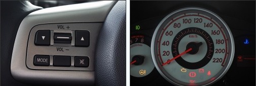 儀表采用黑白兩色搭配,完全符合運(yùn)動(dòng)小車(chē)的感受。居中的速度表位置相當(dāng)突出,字體也比較大,察看行車(chē)信息相當(dāng)清晰明了。油料和自動(dòng)擋位情況用一小塊長(zhǎng)方形電子液晶屏顯示,單獨(dú)位于速度表右側(cè),沒(méi)有占用速度儀表空間,這種做法不僅時(shí)尚,也更突出速度這一對(duì)于運(yùn)動(dòng)車(chē)來(lái)說(shuō)的特征。