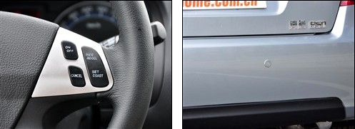 『奔騰B50全系標配的定速巡航(左)及倒車雷達』