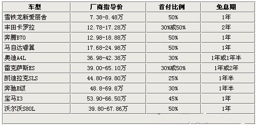 以上我們?yōu)榇蠹伊信e的10款車(chē),都是在貸款購(gòu)車(chē)中做得比較厚道的,零利率政策,讓這些商家都在一定程度上得到了一些好處。根據(jù)車(chē)型價(jià)位的不同,各品牌對(duì)貸款政策的制訂也有所區(qū)分。一些價(jià)格偏低的車(chē)型一般都采用首付50%的方式收取第一筆購(gòu)車(chē)款,而大部分價(jià)位較高的車(chē)型,首付的金額也就偏低,僅為30%左右。