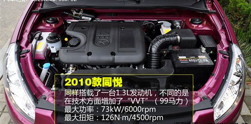 2010款1.3L同悅搭載了帶有雙VVT技術(shù)的雙頂置凸輪軸全鋁發(fā)動(dòng)機(jī),相比老款在性能上有了小幅提升,最大功率99Ps/6000rpm,最大扭矩126N·m/4500rpm;該發(fā)動(dòng)機(jī)并非自主研發(fā),而是江淮進(jìn)行針對(duì)性改造誕生的;在實(shí)際測試中變速箱配合著發(fā)動(dòng)機(jī),整個(gè)加速過程比較線性,動(dòng)力分配均勻,沒有突兀的爆發(fā)點(diǎn),最終加速時(shí)間為11.3s,成績合格。