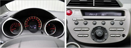 飛度的內(nèi)飾設(shè)計(jì)前衛(wèi)但用料一般,功能按鈕邏輯性很強(qiáng),需要一定時(shí)間適應(yīng)