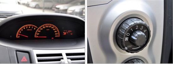雅力士的中控臺(tái)簡(jiǎn)潔明快,垂直設(shè)計(jì)的空調(diào)溫度旋鈕富有新意