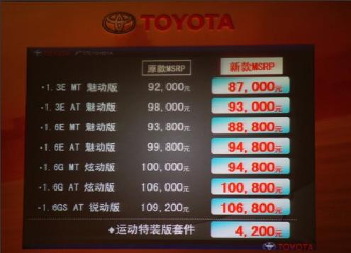 2010年9月19日,廣汽豐田在廣州發(fā)布升級改款的新雅力士,推出1.3E魅動(dòng)版手動(dòng)擋和自動(dòng)擋、1.6E魅動(dòng)版手動(dòng)擋和自動(dòng)擋、1.6G炫動(dòng)版手動(dòng)擋和自動(dòng)擋、1.6GS銳動(dòng)版自動(dòng)擋等共7款車型,廠家建議零售價(jià)為:8.7萬元到10.68萬元。自即日起,新雅力士在全國正式上市。