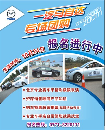 10月24日,瘋狂再次來襲,以操控性著稱的一汽馬自達將舉辦專場團購,活動現(xiàn)場還有北京專業(yè)賽車手親臨現(xiàn)場帶來汽車特技表演,整個活動具有很強的專業(yè)性及趣味性!由于名額有限,想?yún)⒓右黄R自達專場團購的朋友要抓緊時間報名了!