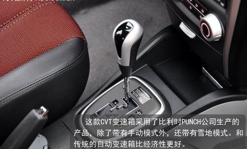 CVT變速箱的突出優(yōu)點(diǎn)是平順性,V3菱悅使用的這款來自比利時(shí)邦奇公司,它除了帶有手動(dòng)模式外,還帶有雪地模式,只是對(duì)于主打運(yùn)動(dòng)的車型來說,CVT的動(dòng)力輸出感,顯得有些不夠直接。