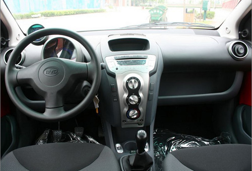 外觀是比亞迪F0整體設計最成功的部分,它借鑒了豐田Aygo的設計手法,時尚可愛的造型讓人過目難忘。前大燈采用雙橢圓形設計,頗有奔馳Smart的味道,尾部線條模仿得更為成功,隱約可以看到沃爾沃C30的影子。掀背后門采用了大面積鋼化處理的尾窗,上面還增加了電熱除霜和后窗雨刮器。