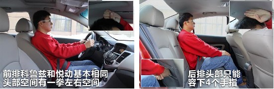 前面說過,科魯茲的軸距是2685mm,而悅動為2650mm,科魯茲相比悅動還要長35mm,但就實際乘坐來說,悅動的空間更大一些,尤其是后排的腿部空間。而科魯茲因為C柱較為傾斜,所以后排的頭部只能容下4個手指的距離。而在后備箱方面,悅動再次超過了科魯茲,悅動為475升,而科魯茲僅有400升。