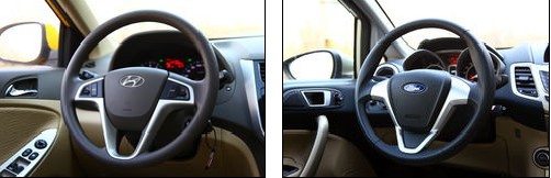 雖然方向盤都比較省力,不過相比起來,車重更大一些的嘉年華卻比瑞納的更為輕巧,這一點(diǎn)與我們預(yù)想的并不太一致。兩車的轉(zhuǎn)向都有一定的延遲,大角度轉(zhuǎn)彎時(shí)需要更多地修正方向,不過這對正常駕駛行為來說影響并不是很大。