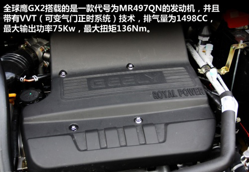 在國(guó)內(nèi)大部分A00級(jí)小車選用的發(fā)動(dòng)機(jī)排量都集中在0.8L、1.0L和1.3L,但是GX2卻與眾不同,除了常規(guī)的1.3L車型外還有搭載1.5L VVT發(fā)動(dòng)機(jī)的車型可供選擇,最大功率75kw,最大扭矩136Nm,可以說(shuō)是名副其實(shí)的大馬拉小車。