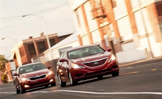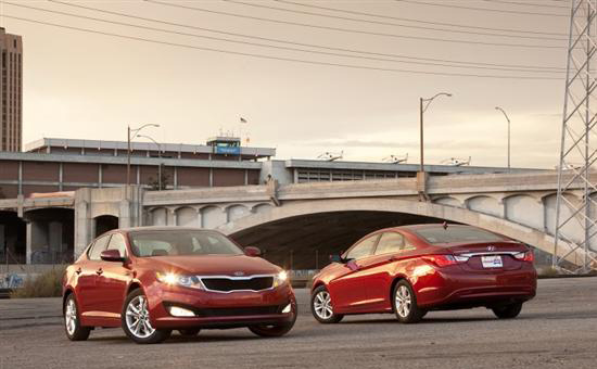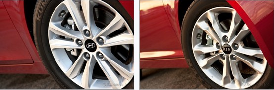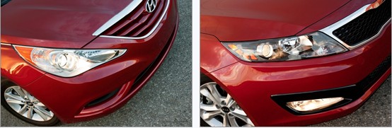 當(dāng)一輛采用辣椒紅車漆的2011款起亞遠(yuǎn)艦(國(guó)內(nèi)暫名為K5)EX抵達(dá)我們的辦公區(qū),并且恰好停在用于長(zhǎng)期測(cè)試的2011款索納塔(國(guó)內(nèi)名為第八代索納塔)GLS旁邊時(shí),他們涂裝的顏色竟然是如此的相似。不過(guò)這只我們討論的一部分,除此以外兩者還存在很多的相似之處,甚至可以說(shuō)他們從本質(zhì)上就是一樣的。