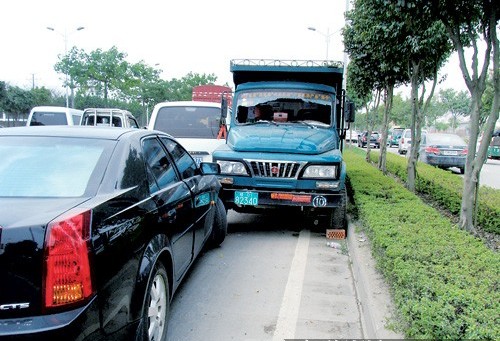 當(dāng)日上午11時許,記者來到秀廂大道金源汽車城附近路段,見到車流一片擁堵。道路中橫七豎八地停著幾輛車,有的車頭已被撞凹。在綠化帶邊,停有一輛滿載紅磚的農(nóng)用車。農(nóng)用車被一輛金杯車和一輛凱迪拉克轎車前后夾住,農(nóng)用車的車窗已粉碎。農(nóng)用車上坐著一名女子,她驚魂未定地說,有人襲擊他們。