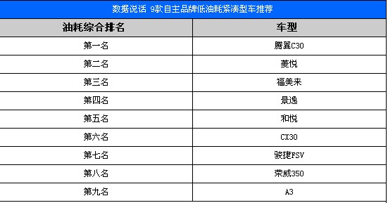 綜合點(diǎn)評(píng):我們?cè)诹谐隽司趴羁梢源砭艂(gè)自主品牌的車型油耗的同時(shí),區(qū)分出了排量和手動(dòng)檔、自動(dòng)檔車型的區(qū)別,除了個(gè)別車型的油耗數(shù)據(jù)無(wú)法獲得,絕大部分車型油耗可以進(jìn)行對(duì)比。可以看出來(lái),大部分車型的主流排量在1.5-1.8L之間,主流排量是1.5L和1.6L,手動(dòng)檔車型通常要比自動(dòng)檔車型多耗油近1L,由此可見,如果要省油,就要買低排量的車型、手動(dòng)檔車型 .