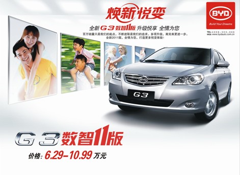 2011年,隨著消費市場整體回歸平靜,各大車企也陷入冷思考,尋找新的突破口。自問世以來就一直扮演“車市黑馬”角色的比亞迪,在這個節(jié)骨眼上也打出了“煥新悅變”旗號。今天小編選取了比亞迪今年主打車型之一的G3數(shù)智11版進行評測,與大家共同考證比亞迪的沉淀與提升。