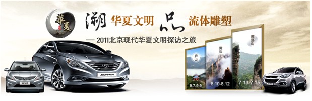 作為2010年北京現(xiàn)代“三山五岳”文化探訪活動(dòng)的延續(xù)與提升,2011年活動(dòng)以“溯?華夏文明,品?流體雕塑”為主題,強(qiáng)調(diào)對(duì)自然審美和傳統(tǒng)藝術(shù)的探訪,并邀請(qǐng)車主、媒體與藝術(shù)家共同尋訪雁蕩山、廬山和黃山這三座名山。車隊(duì)將尋訪自然山水與人文藝術(shù)的美學(xué)特征,在此過程中品味 “流體雕塑”設(shè)計(jì)理念,以及其與北京現(xiàn)代品牌、“流體雕塑”設(shè)計(jì)理念之間的文化淵源。