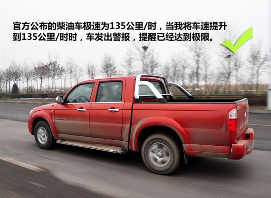 對于皮卡來說,其實都沒必要描寫舒適性,買這車基本上就是為了拉貨的,后面的鋼板彈簧只要不把貨物巔飛就好了。威虎F1后面的鋼板彈簧調(diào)教的不算特別硬,除了過減速帶的時候后座乘客屁股會短暫離開座位,對于細碎路面的過濾還是可以忍受的,只是共振很大。嗨,不多言了,能拉貨就行了。跑高速穩(wěn)定性很一般,只有1.6噸的車身加上較硬的“板兒簧”,過起伏路的時候比較飄,還好很少人會把皮卡開得這么快。