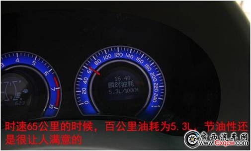 此外,一般1.5L車型的百公里油耗約在7-8L之間,而筆者在駕駛過程中發(fā)現(xiàn),當(dāng)G3開到接近國內(nèi)城市路況的平均時速65公里時,從儀表盤反饋的數(shù)據(jù)來看,其百公里油耗是5.3L,節(jié)能效果可見一斑。筆者還從經(jīng)銷商處得知,在今年年初舉辦的G3節(jié)油挑戰(zhàn)賽中,有一名選手更以2.95L/百公里油耗獲得了冠軍。看來,如若駕駛得當(dāng),G3的節(jié)油能力完全能超越油價的上漲幅度。