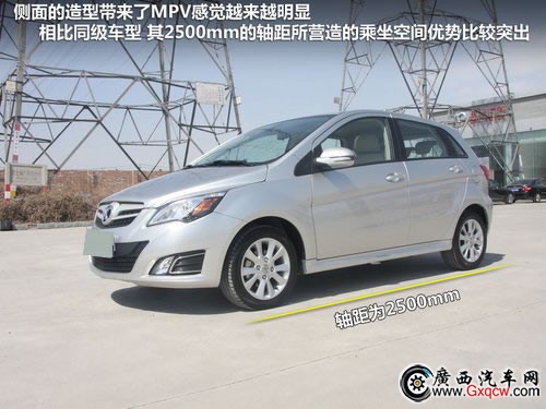 就像文中開(kāi)篇提到過(guò)的,這款車型的外觀造型,當(dāng)我們第一眼看到他時(shí), 很容易就和奔馳B級(jí)聯(lián)系到一起,從其車身尺寸來(lái)講,其比奔馳B級(jí)小了一圈,它的車身尺寸分別為長(zhǎng)3998mm、寬1720mm、高1503mm,軸距為2500mm 。別的優(yōu)勢(shì)咱們暫且不看,出于5-8萬(wàn)元的市場(chǎng)售價(jià),其時(shí)尚的外形帶來(lái)了較強(qiáng)的市場(chǎng)競(jìng)爭(zhēng)力。