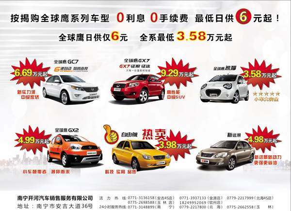 (廣西汽車網(wǎng) 訊)近日,編輯從吉利全球鷹廣西南寧開(kāi)河汽車銷售服務(wù)有限公司了解到,對(duì)于即將到來(lái)的國(guó)慶和中秋雙節(jié),吉利全球鷹全系“放價(jià)”,最高鉅惠2萬(wàn)元,最低僅3.58萬(wàn)元起售。車展期間凡現(xiàn)場(chǎng)訂購(gòu)全球鷹旗下任意一款車型均可參與抽獎(jiǎng)返現(xiàn)金活動(dòng),最高返現(xiàn)500元。感興趣的朋友可以蒞臨9月29日—10月2日廣西汽車交易會(huì)開(kāi)河全球鷹B11號(hào)展位進(jìn)行詳細(xì)咨詢;蛘叩顷憦V西汽車網(wǎng)南寧開(kāi)河商城進(jìn)行報(bào)名,銷售顧問(wèn)會(huì)在24小時(shí)內(nèi)聯(lián)系您!