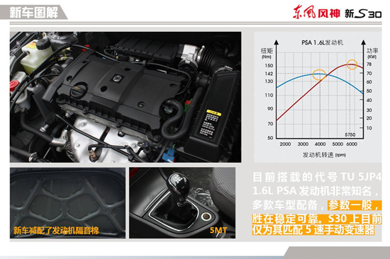 從宣傳上看,動力總成的全新搭配是2013款S30改款的一個重頭戲,原有PSA出品的1.6L TU5JP4發(fā)動機配合5速手動和4速自動的組合改成了老1.6L發(fā)動機配合5速手動,東風(fēng)自行研制的1.5L發(fā)動機配合4速自動的新狀況。