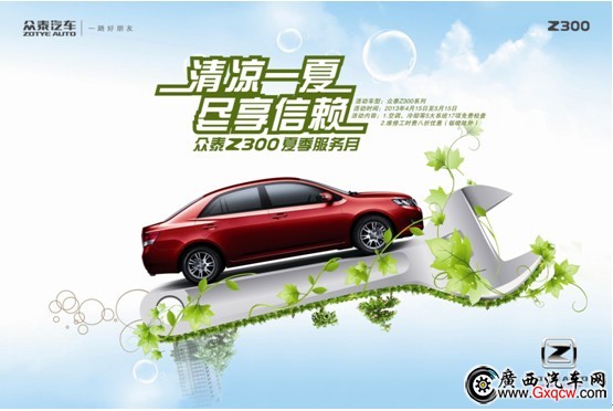 經(jīng)過霧霾連連的春天,炎炎夏日即將到來。為答謝消費者的厚愛與支持,眾泰Z300自4月15日—5月15日,在全國特約銷售服務(wù)店全面開展“清涼一夏 盡享信賴”眾泰Z300夏季服務(wù)月活動,為車主們提供免費的夏季專項檢查和工時費8折優(yōu)惠服務(wù)活動。