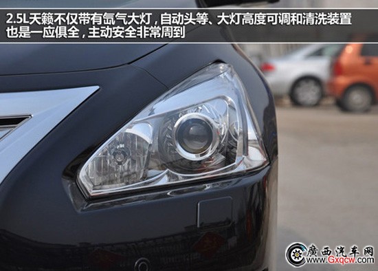 外觀方面,天籟的造型非常年輕化,適合的群體也非常廣泛,摒除了商務(wù)氣息的天籟在自駕出行時(shí)完全忘記了工作時(shí)的繁忙景象。大燈的配置在夜路行駛時(shí)非常重要,2.5L天籟不僅帶有氙氣大燈,自動(dòng)頭等、大燈高度可調(diào)和清洗裝置也是一應(yīng)俱全,主動(dòng)安全非常周到。