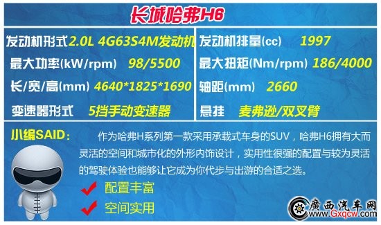 推薦車型:哈弗H6(2.4L自動)