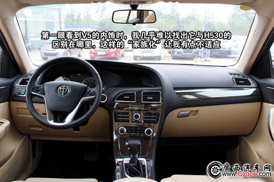 中華V5的內(nèi)飾照搬了之前大受好評(píng)的H530的設(shè)計(jì),采用了滿足大眾口味的上深下淺設(shè)計(jì),中控臺(tái)則以大面積鍍鉻包裹,并采用了時(shí)下流行的仿人體工程學(xué)不對(duì)稱設(shè)計(jì)。