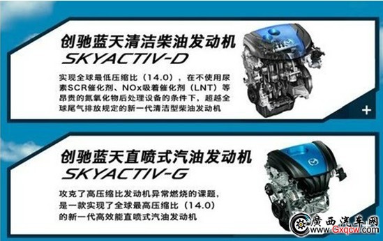 創(chuàng)馳藍(lán)天的汽油發(fā)動(dòng)機(jī)SKYACTIV-G發(fā)動(dòng)機(jī)入選了沃德十佳發(fā)動(dòng)機(jī),馬自達(dá)2.0排量SKYACTIV-G發(fā)動(dòng)機(jī)首次在普通民用車上實(shí)現(xiàn)了高達(dá)14:1的汽油機(jī)壓縮比,引入國(guó)內(nèi)后根據(jù)實(shí)際情況壓縮比調(diào)整為13:1。