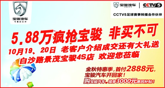 這樣的好事需要等待嗎?景茂店告訴你,現(xiàn)在無需等待,10月19-20日,寶駿等你來團(tuán)購,只要到店,就可享受到最實(shí)惠的價(jià)格,絕對底價(jià)!
