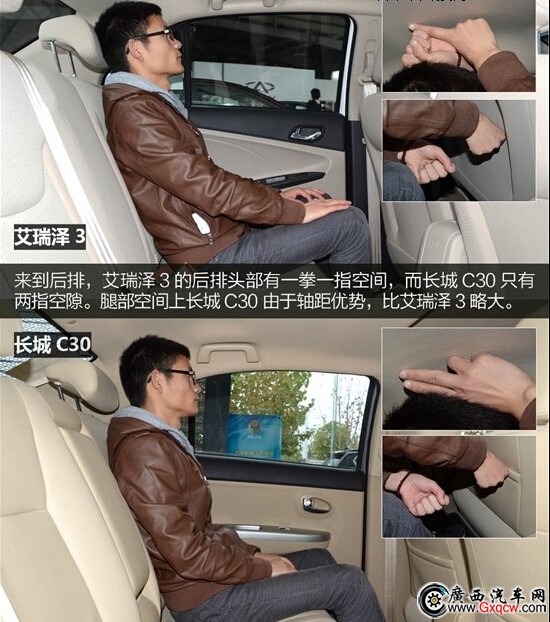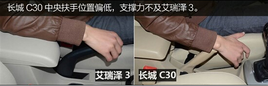兩車都采用皮質(zhì)座椅,其中長城C30坐墊更加厚實(shí),舒適度非常好,只是米色不夠耐臟。而艾瑞澤3坐墊比較大,包裹性不錯。兩車主駕駛座都支持高低調(diào)節(jié)。