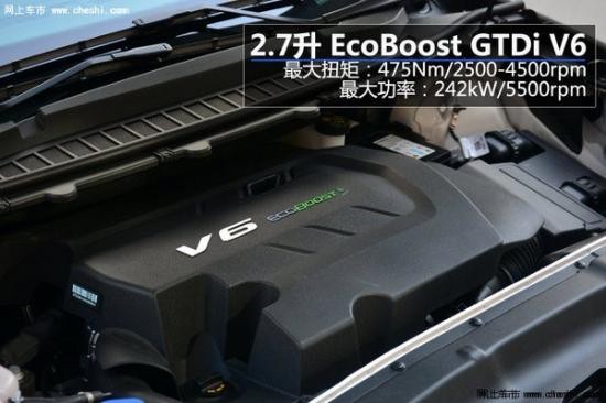 全新福特銳界首次搭載的2.7升EcoBoost GTDi V6汽油直噴渦輪增壓發(fā)動機,并配備SeletShiftTM 6速手自一體變速箱。這款發(fā)動機達到325馬力(242kw/5500rpm)的最大輸出功率,最大扭矩達475!っ/2500-4500rpm。全新福特銳界還提供另外一種動力選擇。全新升級的2.0升EcoBoost GTDi發(fā)動機,采用雙渦流渦輪增壓技術,配合全新的S/S自動啟停系統(tǒng),更可進一步降低燃油消耗。