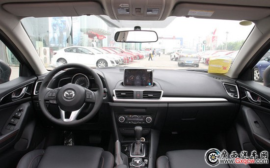 昂克賽拉的內(nèi)飾設(shè)計(jì)則是簡(jiǎn)約風(fēng)格,規(guī)整的中控臺(tái),搭配直立式7英寸中控液晶屏與人機(jī)交互系統(tǒng)很有新意,駕駛席位獨(dú)特的儀表盤裝飾以及多功能方向盤卻又不失動(dòng)感,很符合年輕消費(fèi)者的審美。在配置方面,除了剛才提到的集成式人機(jī)交互系統(tǒng)與中控液晶屏外,昂克賽拉還提供抬頭顯示功能,最大限度的保證了駕駛員目不離路。