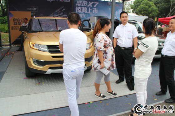 當(dāng)天下午,兩位男子走進陸風(fēng)汽車展位,立刻被眼前的陸風(fēng)X7所吸引,兩個人前前后后看了幾遍,又坐到車內(nèi)體驗一番,便與周維松開展談判,最后決定:現(xiàn)在就訂車,而且就要現(xiàn)場擺放的展車,一手交錢,一手拿車。這顯然是出了一道難題,因為由于熱銷,宜興當(dāng)?shù)氐闹睜I店已無現(xiàn)車,如果提走展車,還要立刻從無錫的4S店向這里調(diào)車。但看到客戶的神情確實十分渴望、急切,周維松還是答應(yīng)了他們的要求。他告訴筆者,雖然上市剛剛一個多月,但是陸風(fēng)X7銷售非;鸨,在宜興處于“一車難求”的狀況。