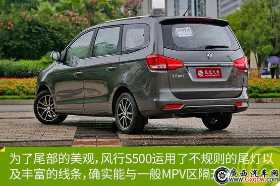 車身側(cè)面證明了這是一款MPV車型,特別是第三排的側(cè)窗尺寸較大,不過相對于多數(shù)同價(jià)位MPV,風(fēng)行S500沒有采用后滑門,這樣也表明了自己家用車的身份。同時(shí),尾部也進(jìn)行了處理,包括并大量運(yùn)用的線條以及造型豐富的尾燈,確實(shí)更容易讓家庭用戶接受。