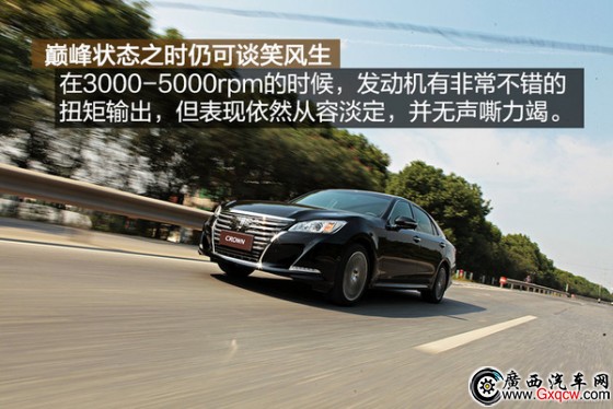 這臺(tái)2.0T渦輪增壓發(fā)動(dòng)機(jī)在皇冠上面并不存在是否夠用之類的問(wèn)題,因?yàn)榘l(fā)動(dòng)機(jī)功率調(diào)教更低、整備質(zhì)量也要更重的漢蘭達(dá)上已經(jīng)有著相當(dāng)出色的表現(xiàn),更何況皇冠本來(lái)就不是一臺(tái)追求快的車。在調(diào)教方面,如同漢蘭達(dá)一樣,前段的油門踏板設(shè)置的并非如大部分日系車般的敏感,線性的油門是皇冠舒適駕乘的第一步。