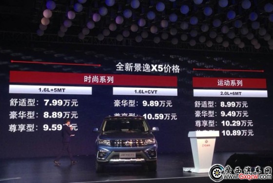 12月17日,東風(fēng)風(fēng)行全新景逸X5正式宣布上市,新車采用全新設(shè)計(jì)理念,造型大氣、配置豐厚,且裝配多連桿獨(dú)立后懸,并推出8年或16萬公里的超長(zhǎng)質(zhì)保,有1.6L/2.0L兩種動(dòng)力共9款車型可選,售價(jià)區(qū)間為7.99萬-10.89萬元,具體信息參看下表: