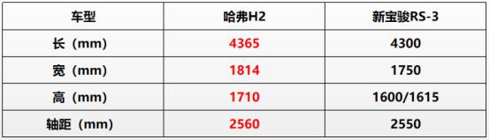 并且在整車尺寸上,哈弗H2長寬高分別為4365/1814/1710mm,軸距達(dá)到2560mm,視覺效果更好,空間表現(xiàn)遠(yuǎn)超同級(jí)其他車型。而新寶駿RS-3長寬高為4300/1750/1600(1615)mm,軸距為2550mm,無論是駕乘舒適性還是裝載能力,都與哈弗H2有著明顯差距。
