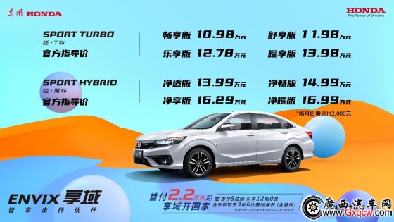 3月26日,東風Honda新款享域正式上市,新車提供燃油、混動兩種動力選擇,共8款車型,市場指導價10.98萬—16.99萬元。新款享域在外觀、內飾、空間和智能等方面進行55項升級,以越級的超大空間、越級的駕駛樂趣、越級的舒享內飾、越級的智能科技,成為消費升級浪潮下家用轎車的理想之選。