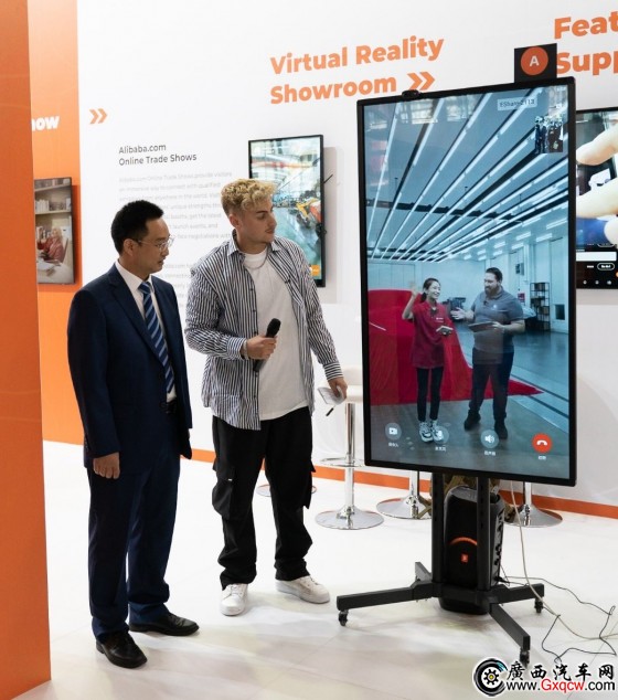 (圖注:德國(guó)AMF展會(huì)主持人通過(guò)數(shù)字屏幕,視頻直播連線8000公里外的柳州工廠)