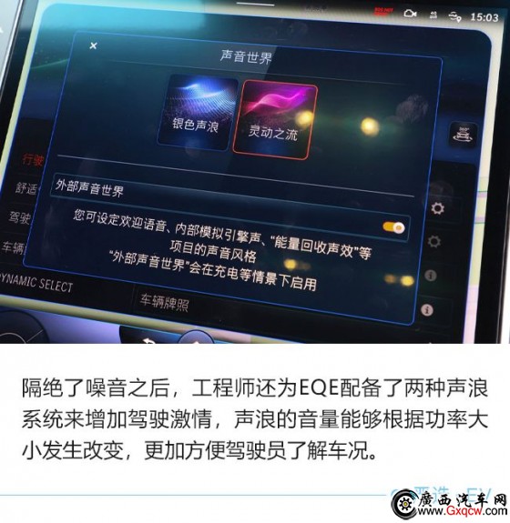 EQE另一處非常凸顯豪華感的地方在于整車(chē)的靜謐性表現(xiàn),相比自家老大哥S級(jí)有過(guò)之而無(wú)不及。弓型車(chē)身帶來(lái)的0.22風(fēng)阻系數(shù)不僅增加了續(xù)航表現(xiàn),同時(shí)也優(yōu)化了整車(chē)風(fēng)噪,除此之外,工程師在EQE的身上也使用了大量隔音材料,比如在車(chē)身上加裝了大量雙層隔音零件聲學(xué)包;在車(chē)架空腔內(nèi)注入聲學(xué)泡沫來(lái)讓車(chē)內(nèi)外徹底隔絕,再加上雙層玻璃的使用,車(chē)輛即便是在高速行駛下,也僅有在通過(guò)一些不太平整的路面時(shí)會(huì)傳出些許胎噪,整個(gè)車(chē)內(nèi)的靜謐性非常強(qiáng)。