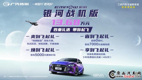 助力年輕人輕松享受、輕松擁有人生第一臺輕跑,影豹銀河戰(zhàn)機版同樣享受購車四大基礎(chǔ)起飛權(quán)益:“傳祺智選”購車方案,先試后買體驗消費、不爽還能換購傳祺品牌其他車型,人性化地滿足年輕人多種需求;超級0首付,至高7000元金融貼息,大大降低年輕人購車門檻;至高5000元置換補貼,輕松緩解購車資金壓力;還有車機系統(tǒng)基礎(chǔ)流量終身免費,暢享3年免費娛樂流量,無限流量引爆年輕無限精彩。