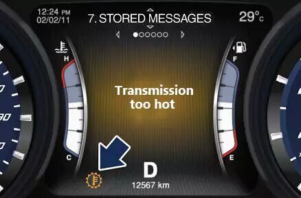變速器油過熱警告燈如果變速器油溫超過工作極限,琥珀色指示燈會點亮。這時請減速,直到油溫回到正常水平。如果依然亮起,建議停車,將檔位置于P檔或N檔,并保持發(fā)動機怠速運轉,直到警告燈熄滅。