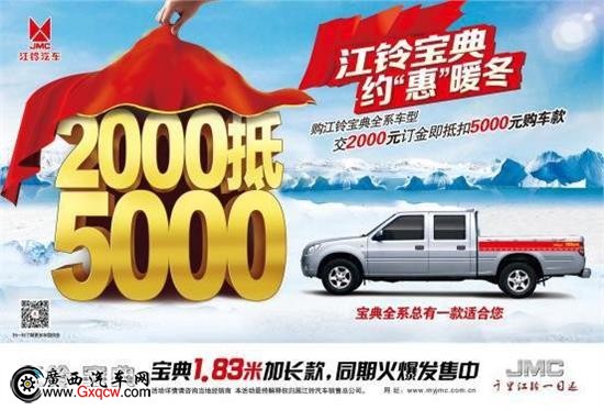 據(jù)獲悉,即日起凡定購江鈴寶典全系皮卡即享交2000元現(xiàn)金抵5000元購車款優(yōu)惠,選省油耐用皮卡,到廣西云匯白沙4S店選江鈴寶典,馬上行動,超值皮卡江鈴寶典馬上開回家,經(jīng)銷商熱線:0771-3800599.