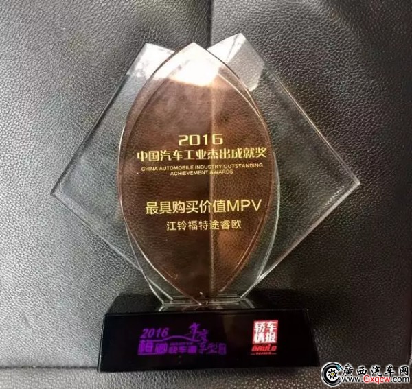 同樣是12月12日,2016汽車工業(yè)杰出成就獎(jiǎng)評(píng)選結(jié)果揭曉。此次評(píng)選活動(dòng)是第十二屆評(píng)選,公正獨(dú)特的評(píng)獎(jiǎng)方式和權(quán)威性的獎(jiǎng)項(xiàng)設(shè)定,都是對(duì)每年中國(guó)汽車工業(yè)的乘用車產(chǎn)品、品牌、企業(yè)的全面評(píng)判。在汽車行業(yè)精英、各大汽車主流媒體的共同見證下,福特途睿歐榮膺最具購(gòu)買價(jià)值MPV獎(jiǎng)項(xiàng)!