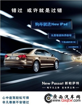 禮遇一:購車即贈New iPad,更可獲贈5萬公里“暢行無憂”尊崇保養(yǎng)套餐;如置換新帕薩特,額外再享8000元現(xiàn)金折讓。